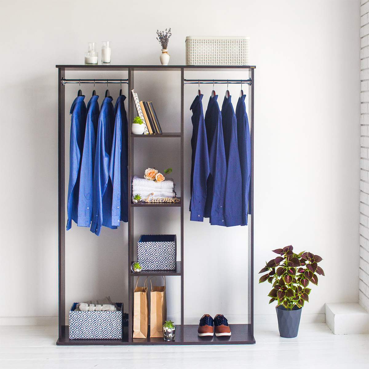 Меблева фабрика Fenster розробила ряд сучасних комплектів меблів з акуратним та продуманим дизайном, виготовленим у єдиному стилі. Оптимальний розмір та форма наших виробів багато в чому відповідає більшості існуючих передпокоїв. Наприклад, у тісному передпокої не завжди помістяться великі корпусні меблі, до того ж виглядати вони будуть більше на заваді, ніж нести свій функціонал. У такому випадку з проблемою зберігання речей може допомогти підлогова стійка, тип: відкрита шафа. Серія «Галлант» - це вішалка підлогова з плічками для одягу, що замінює стандартну шафу, але при менших габаритах. Всі моделі мають верхню полицю, а деякі ряд бокових полиць для декору і зберігання речей.