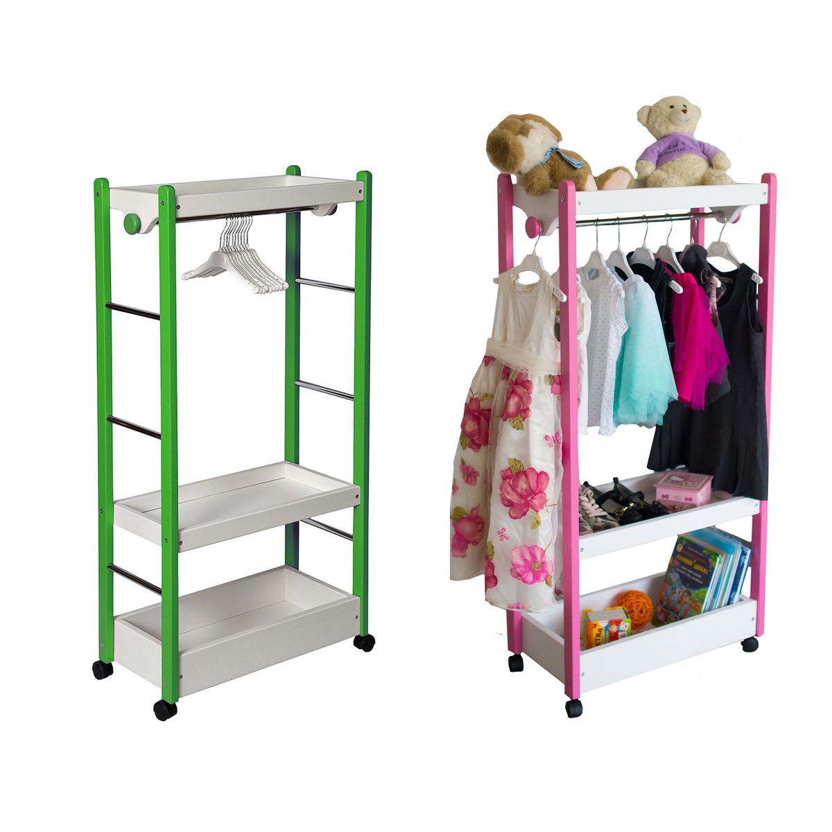 3. Всі вішаки оснащені коліщатками біля основи – це забезпечує високу мобільність та можливість переставити вішак в інше місце навіть зусиллями самої дитини.