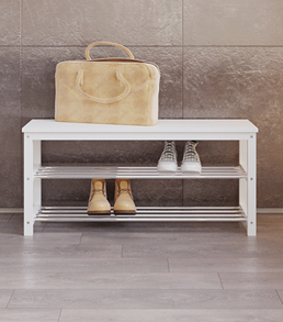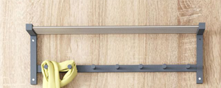 Готовий передпокій "Фієста" підійде також тим, у кого маленька кімната. Невелика вішалка для одягу, а також м'яка банкетка з полицями для взуття доповнені оригінальним елементом - набором рейок. Якщо ви боїтеся забруднити шпалери під вішалкою постійним дотиком одягу, рейки стануть надійним щитом і виключать таку можливість.