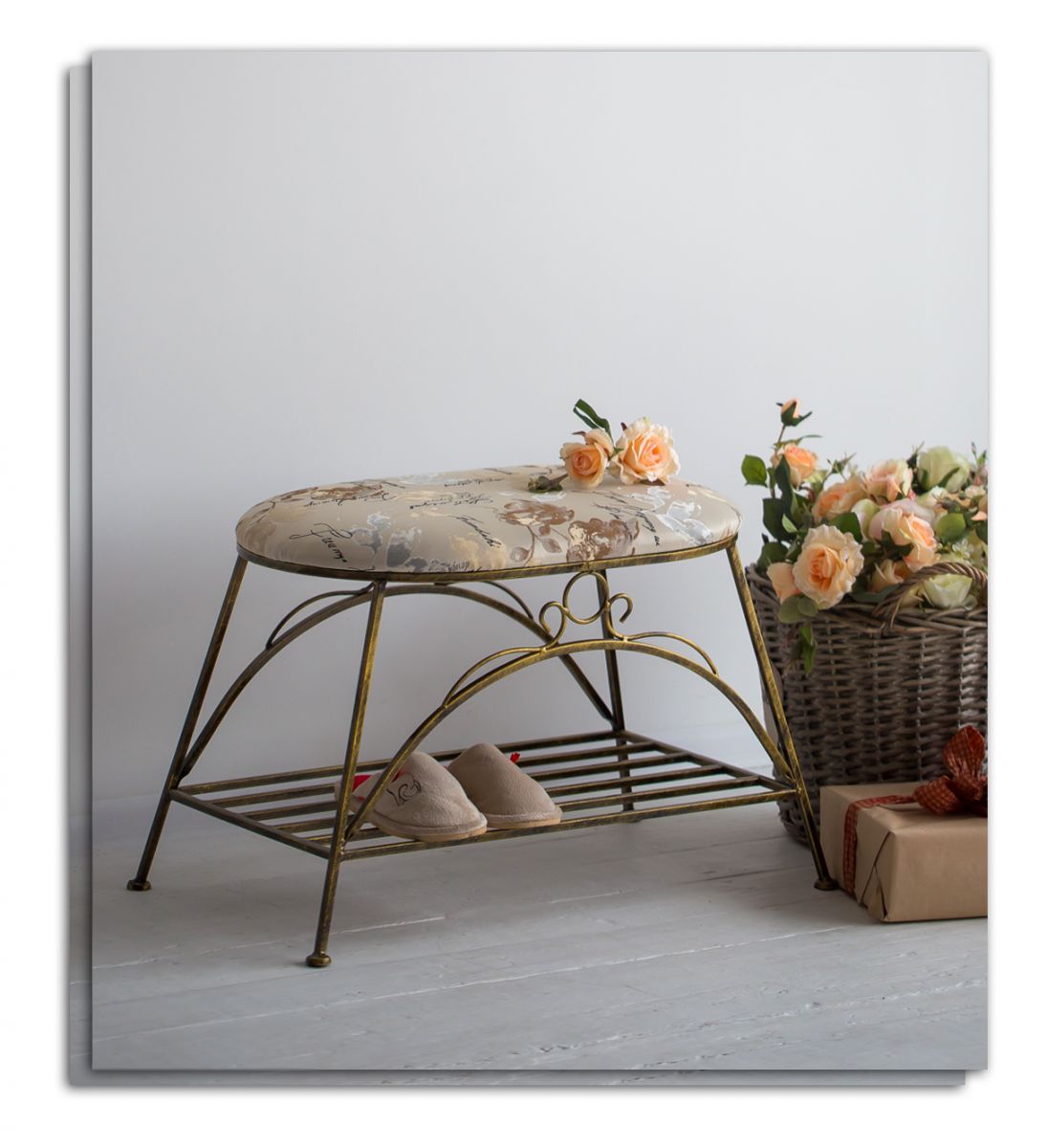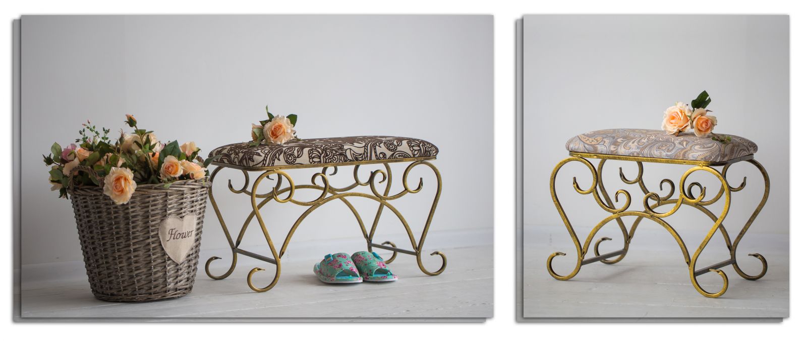 Міцний матеріал, що не витирається з роками, має складний малюнок із вплетеними золотими та срібними нитками. Деякі з наведених варіантів мають різні габаритні розміри, але при цьому виконані в єдиному стилі. Це чудова можливість створювати необхідну композицію у будинку. Кована банкетка – це гарантовано меблі на роки без перебільшення, до того ж доступну ціну на банкетку з металу Ви зможете знайти лише у нас.