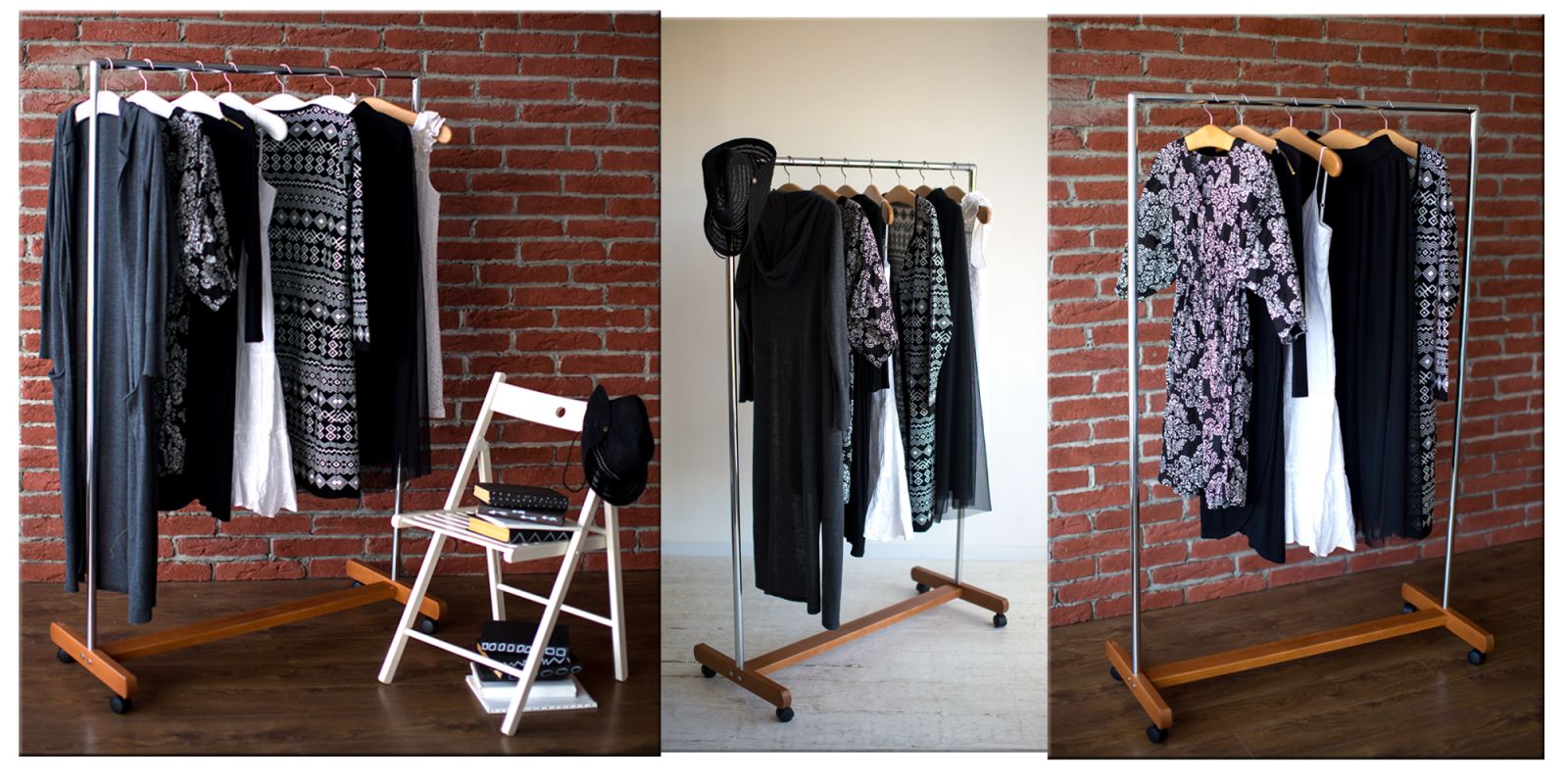 - Мобільність. Стійку з роликами біля основи зручно перекочувати навіть якщо на ній вже розвішано одяг. Наприклад, як вітрина магазину з одягом. Формуйте вітрину швидким переміщенням.